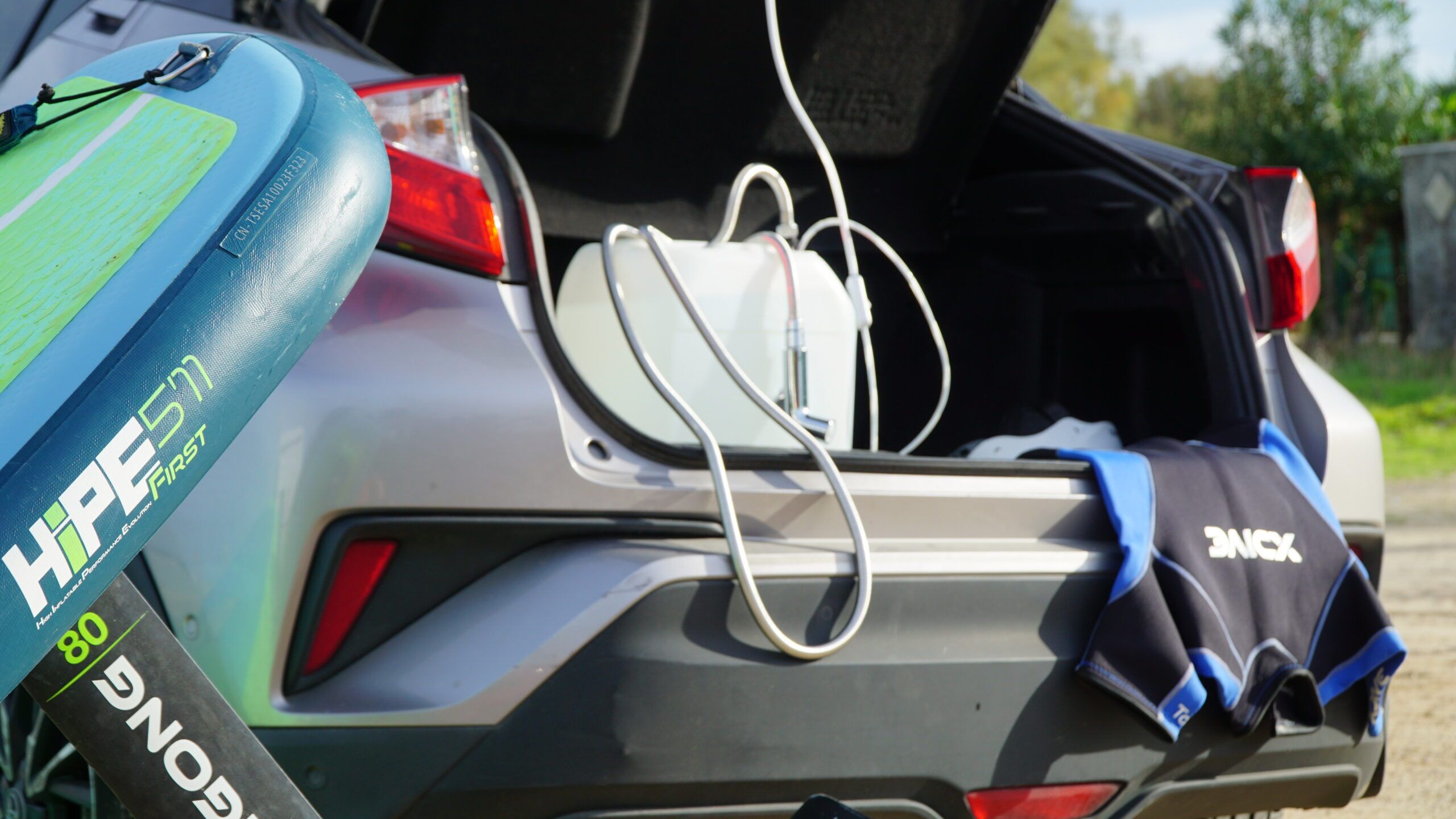 Con una capacidad de 25 litros, ofrece la cantidad adecuada para una ducha y limpieza de material de deporte como, bicicletas, equipos de buceo, natación en el mar o deportes náuticos como el Wing Foil, wind surf, kite surf, tablas de paddle, etc.