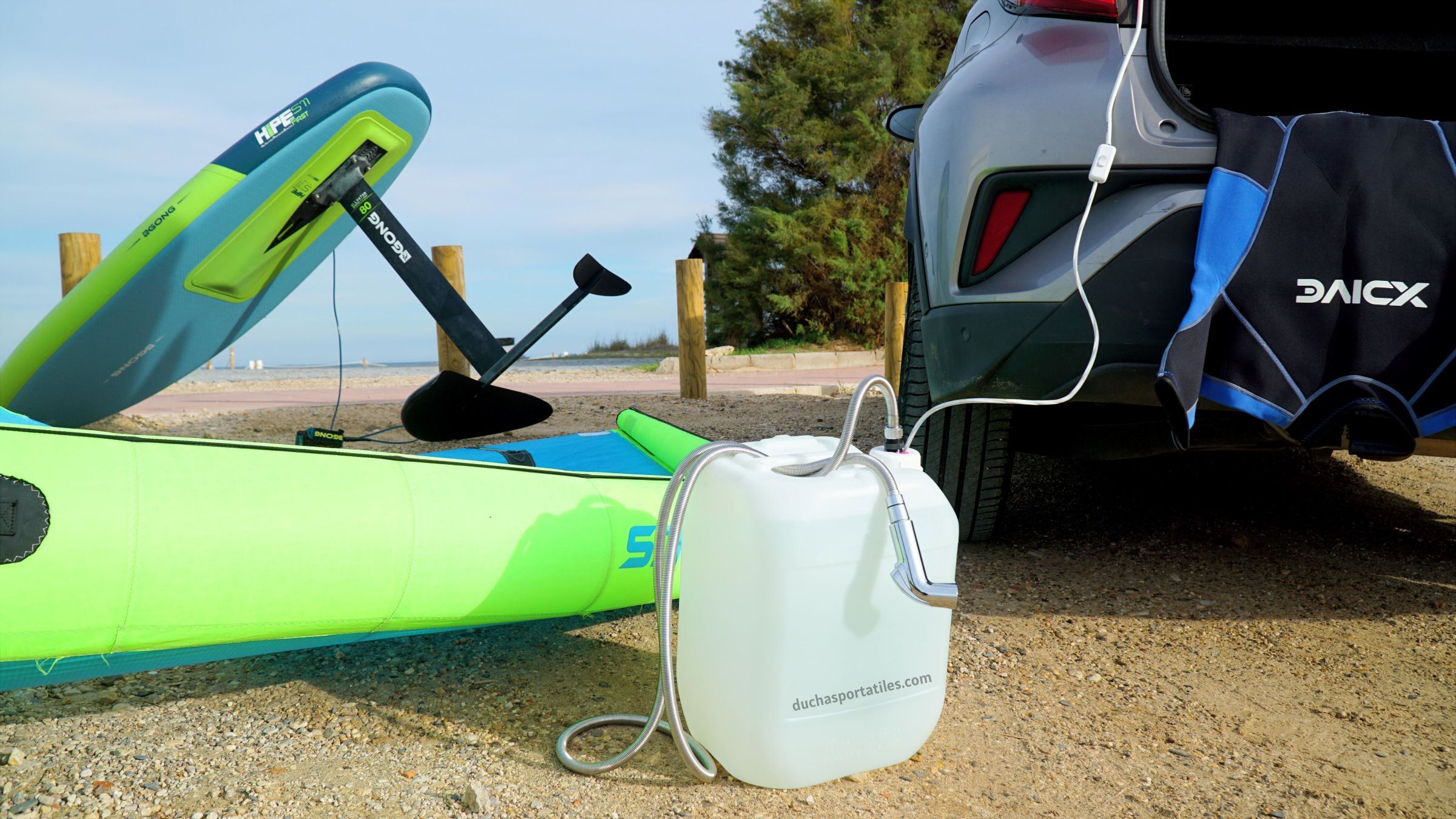 La Ducha Portátil está diseñada para viajeros en furgoneta, camper o cualquier turismo que buscan la comodidad de poder darse una ducha en cualquier lugar.